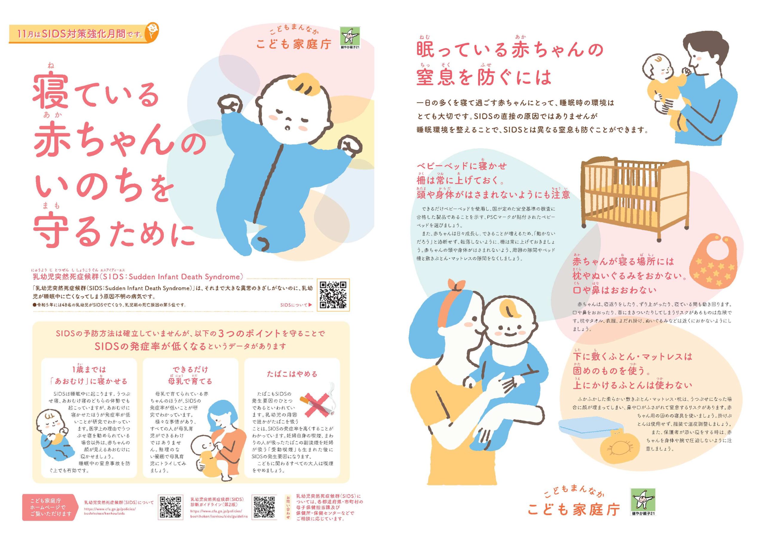 【注意喚起】乳幼児突然死症候群(SIDS)を予防しましょう。